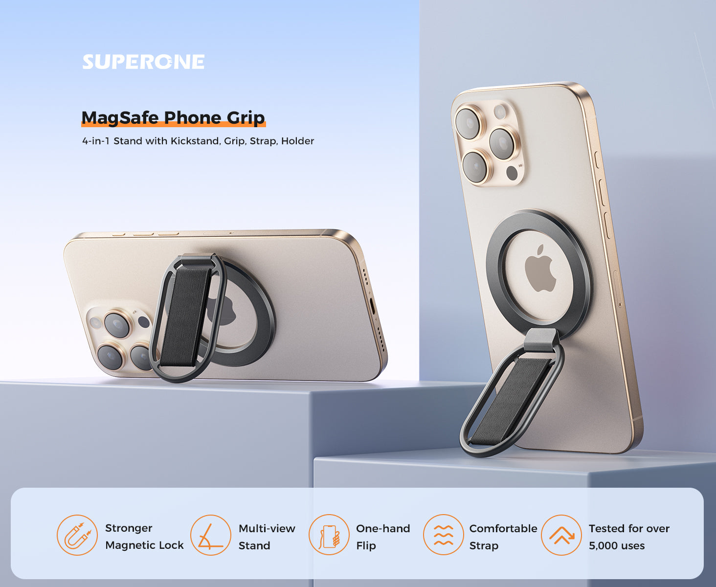 SUPERONE 4-in-1 MagSafe Phone Grip with Finger Strap