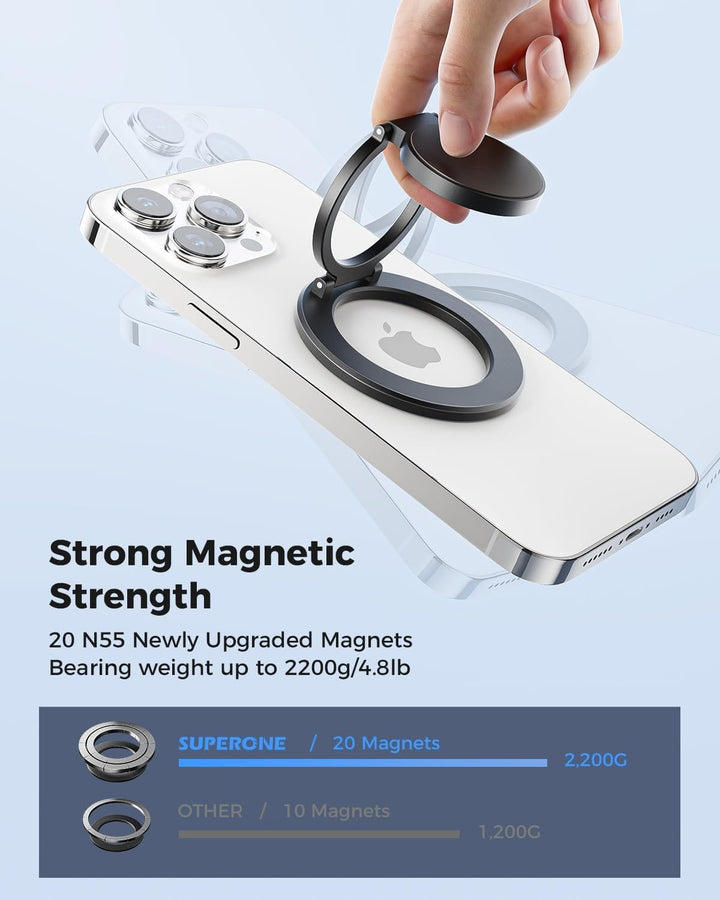Dual-Side Removable Magnetic Ring Holder for MagSafe